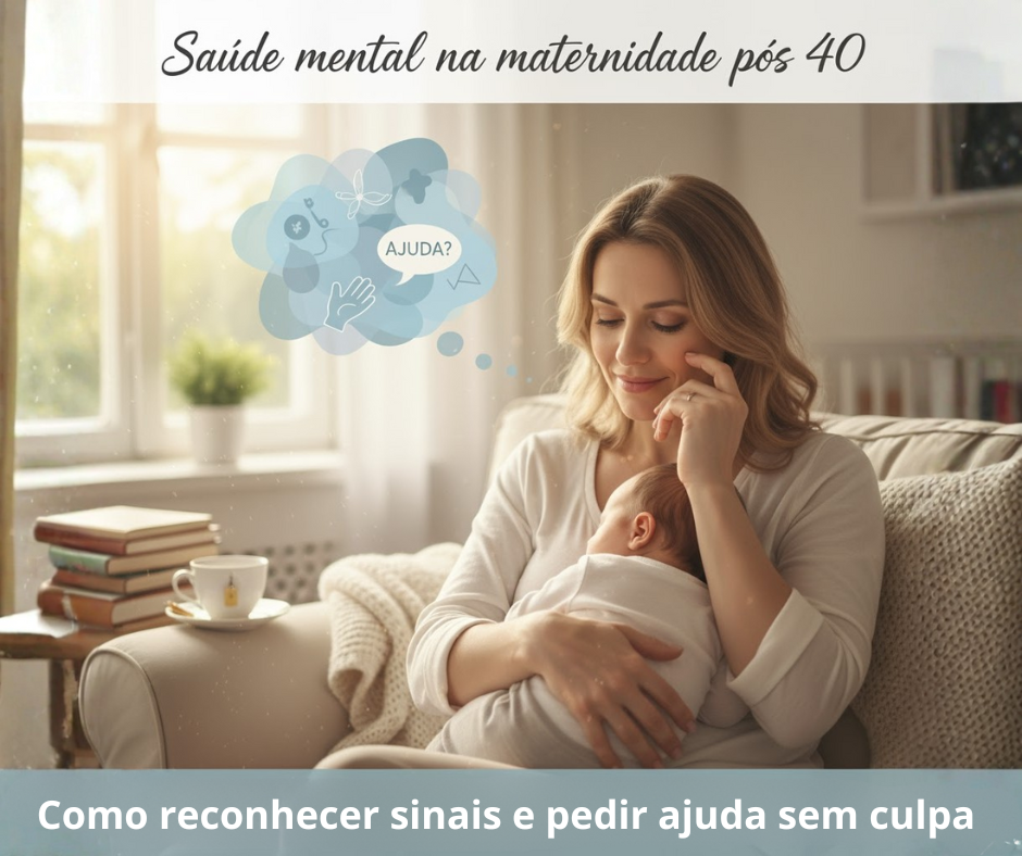 Saúde mental na maternidade pós 40: Como reconhecer sinais e pedir ajuda sem culpa
